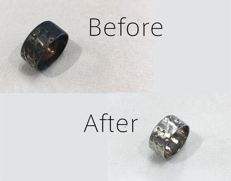 シルバーの輝きといぶしの黒っぽさの対比がかっこいい仕上げです。