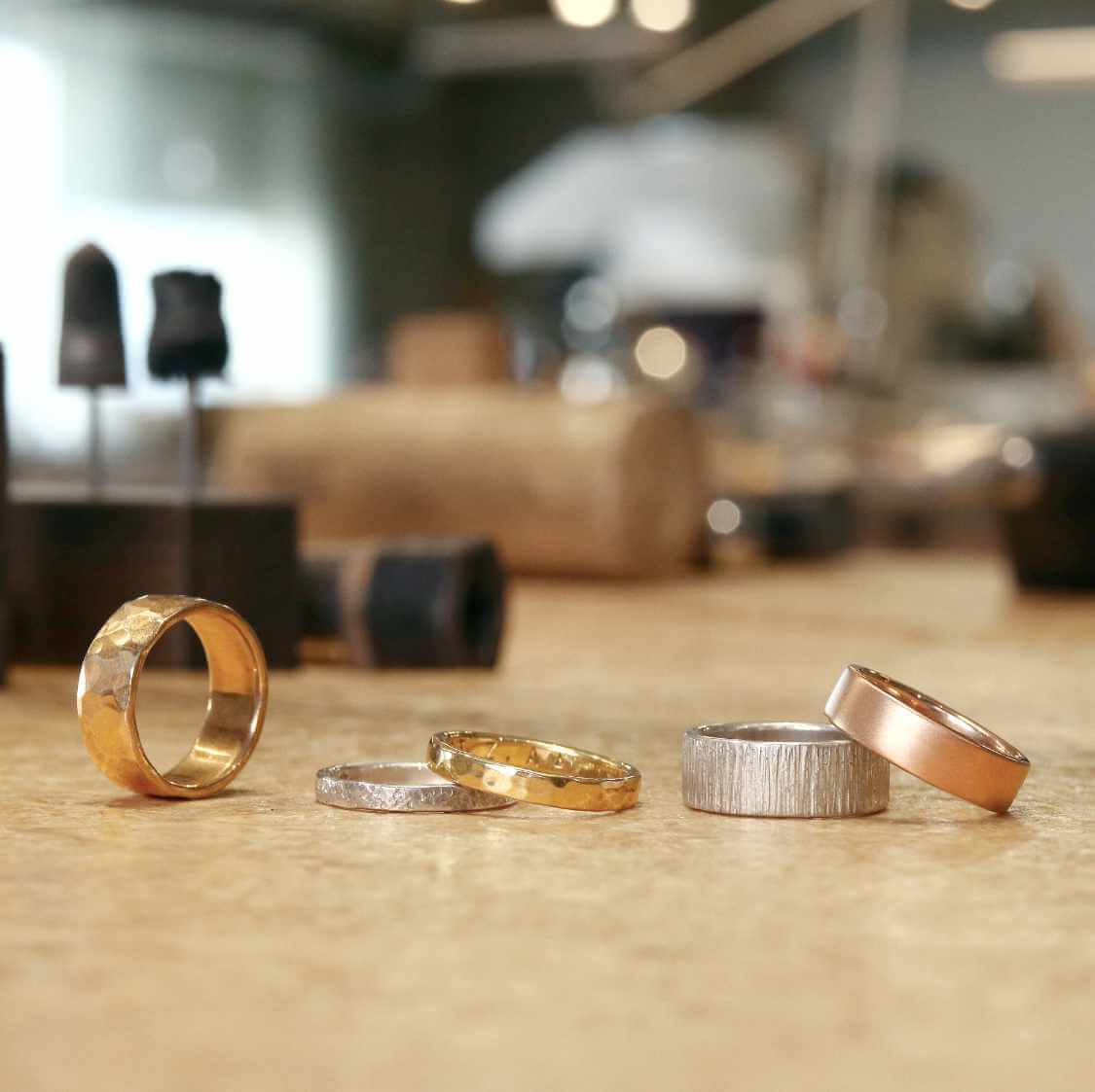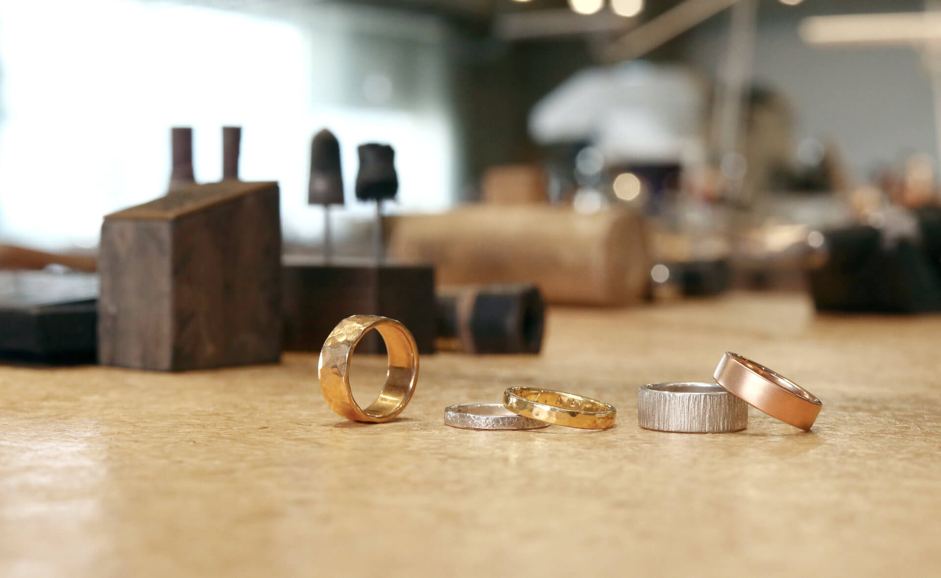 職人の指導のもと、お客様ご自身でシルバーリングを制作していただきます。お一人でお作りいただくことも、お二人以上でご来店いただき共同で制作することも可能です。わずか2〜3時間ほどでお作りいただくことができ、完成したアクセサリーは、その日のうちにお持ち帰りいただけます。名入れや記念日などの刻印は無料。ゴールドメッキなどのオプションもご用意しております。
