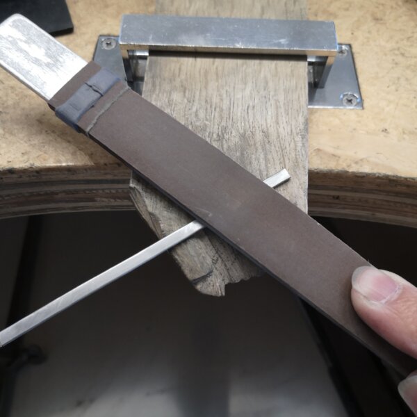 シルバー地金がちょうどよい厚さになったら、サンドペーパーを使って表面を整えます。この作業を施すことで、テクスチャーを入れたあとの仕上がりが美しくなります。