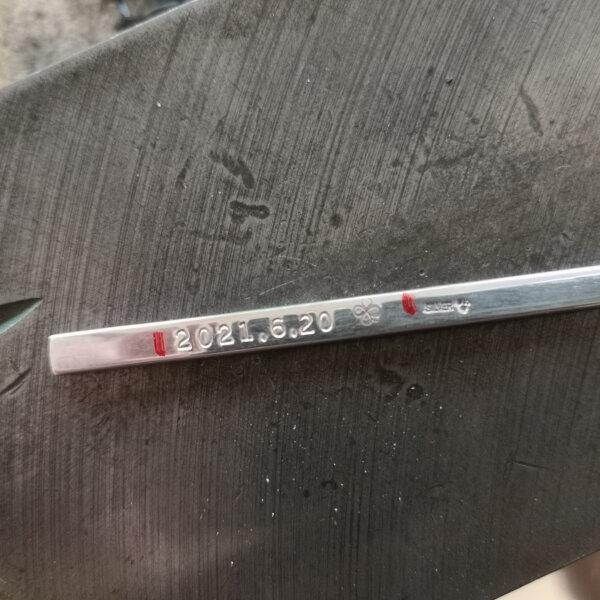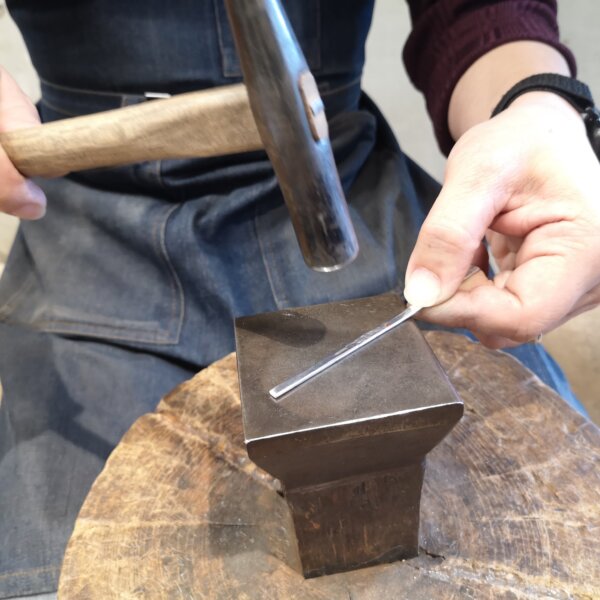 ご希望のお客様は、このタイミングで文字入れを行います。もちろん無料です。事前にシルバーの板で刻印の練習をして頂きますので、初めてでも大丈夫です!数字、アルファベットのほか、絵文字もご用意しております。