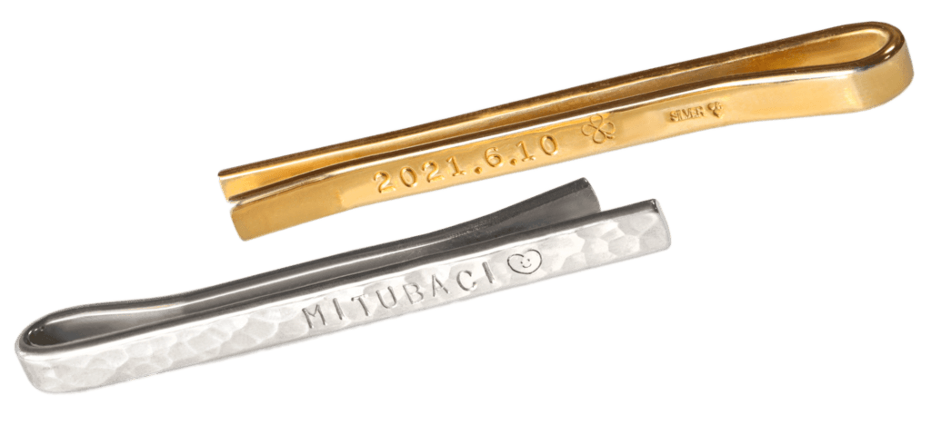MITUBACIの手作りネクタイピンコースは、スーツをお洒落に着飾るオリジナルのシルバータイピンをお客様ご自身で制作できるワークショップです。シルバーの角線に表面加工や文字入れを行い、お好みでルビーやサファイアなどを使った石入れ加工を施せます。スーツやネクタイのスタイルにマッチするデザインのタイピンが欲しい方や、ご家族の就職祝い、父の日に特別なプレゼントを贈りたい方などに最適なコースです。
