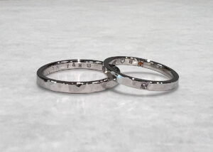 手工制作的锤纹结婚戒指。右侧的戒指内扣有一颗钻石和一颗黄水晶。宝石当天由工匠镶嵌,因此您可以在参观当天将宝石带回家。镶嵌闪亮钻石的手工锤制结婚戒指锤纹婚戒(在...)照片左侧。) Hammered 铂金950 手敲刻字 2.5毫米宽 ¥77,000锤纹婚戒(在...)照片右侧。) Hammered 铂金950 钻石选项, 生日石 手敲刻字 2.0毫米宽度 ¥93,500(在...)) ¥https://www.stg.mitubaci.co.jp/news/28084/ 投稿ナビゲーション磨砂+雪花 手工制作的婚戒充满东方风情镶嵌五颗钻石的手工婚戒。