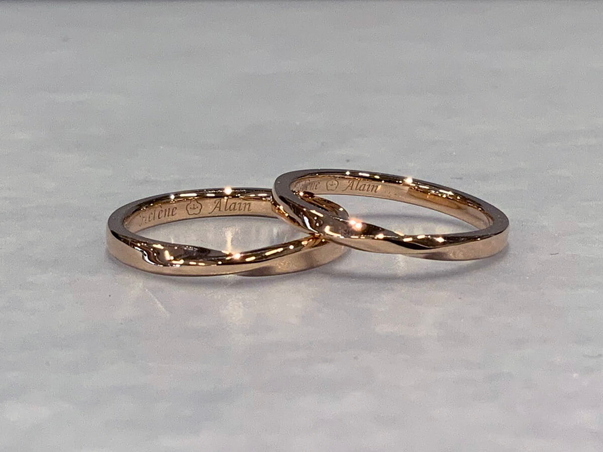 这些手工制作的结婚戒指由玫瑰金扭转而成。您还将亲身体验扭转戒指的过程。在内侧,客户要求雕刻一棵梅树,我们用激光雕刻了梅树。手工制作玫瑰金结婚戒指扭曲的结婚戒指(在...)照片左侧。) 扭曲 (Twist) 18K 玫瑰金 激光雕刻 2.5毫米宽 ¥88,000扭曲的结婚戒指(在...)照片右侧。) 扭曲 (Twist) 18K 玫瑰金 激光雕刻 2.0毫米宽度 ¥77,000(在...)) ¥ 投稿ナビゲーション磨制手工婚戒,光面和亚光处理。手工制作的玫瑰金订婚戒指。
