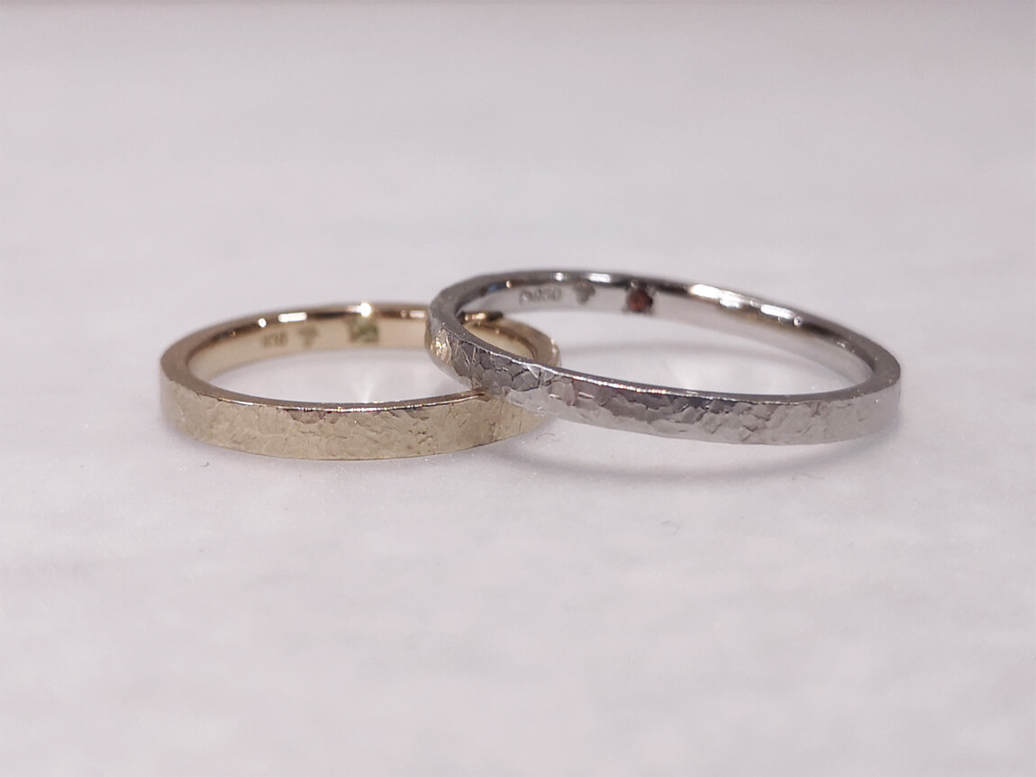 磨砂(喷砂)的手工婚戒,其锤击的表面称为磨砂。饰面的独特冰冷质感更加突出。即使你们俩选择不同的材料和宽度,相同的质地也会给你们带来匹配的外观。铂金和香槟金手工制作的婚戒,磨砂的磨砂搭配纹理。霜爆婚戒(在...)照片左侧。) Frost 18K 香槟金 诞生石 2.0毫米宽度 ¥77,000霜爆婚戒(在...)照片右侧。) Frost 铂金950 诞生石 1.7毫米宽度 ¥70,400(在...)) ¥ 投稿ナビゲーションK18黄金,哑光锤击手工制作的婚戒在宽大的手工银和锤子戒指上镀上玫瑰金