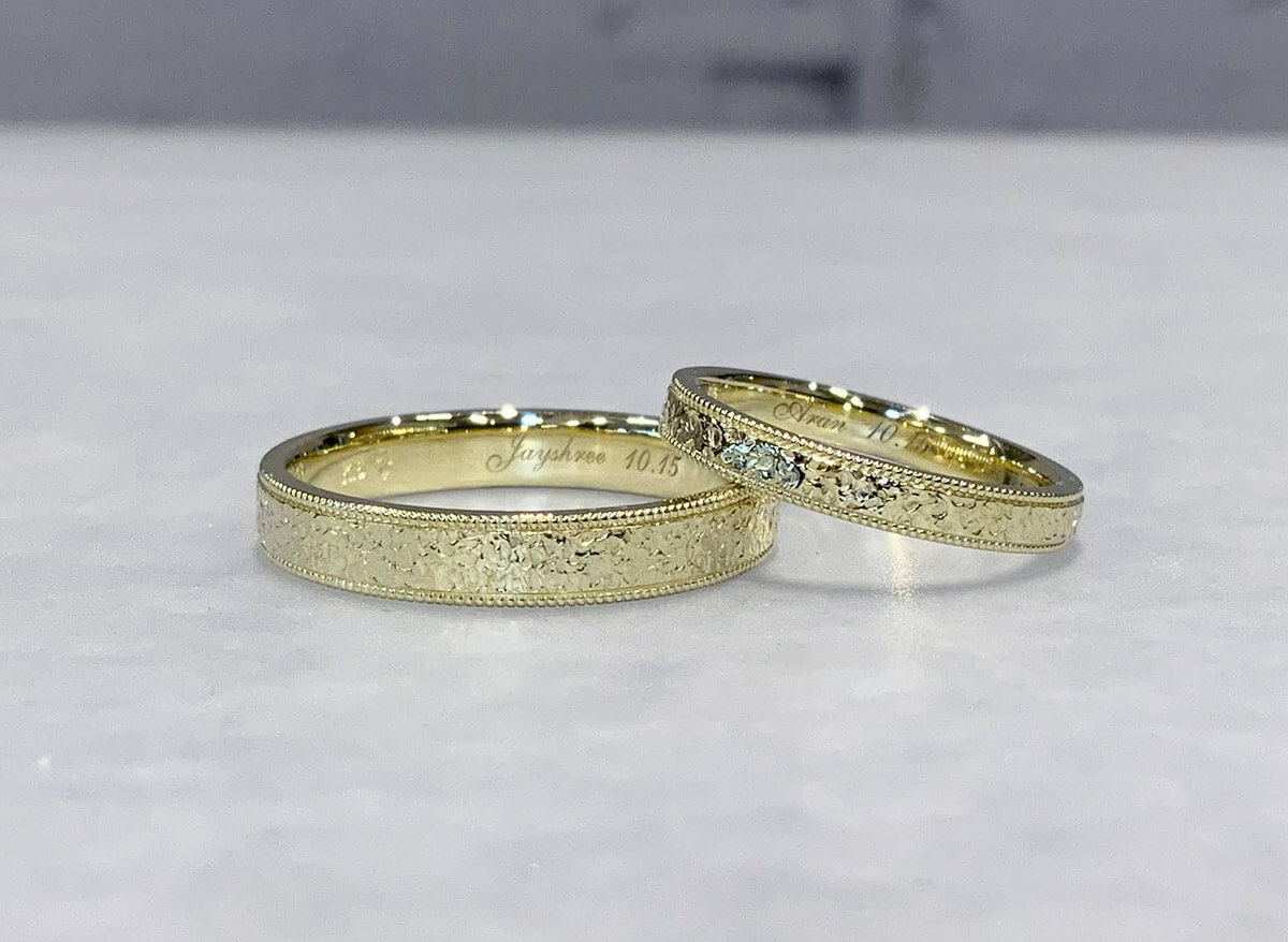 磨砂+雪花 手工制作的婚戒充满东方风情